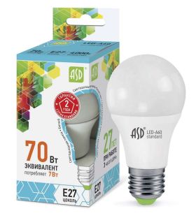 Лампа светодиодная LED-A60-standard 7Вт грушевидная 4000К нейтр. бел. E27 630лм 160-260В ASD 4690612001678