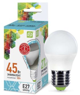 Лампа светодиодная LED-Шар-standard 5Вт шар 4000К нейтр. бел. E27 450лм 160-260В ASD 4690612002187