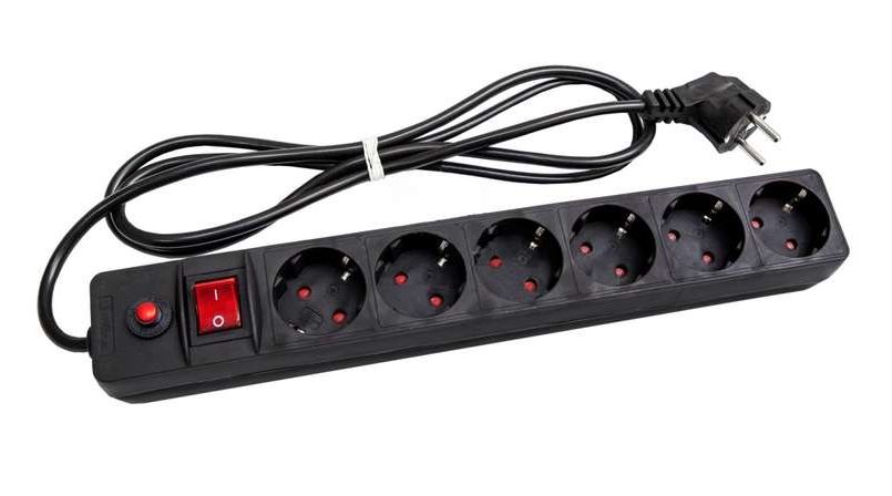 Удлинитель с сетевым фильтром 6х7м с заземл. 10А IP20 ПВС 3х0.75 защ. шторки черн. UNIVersal 967U-4007