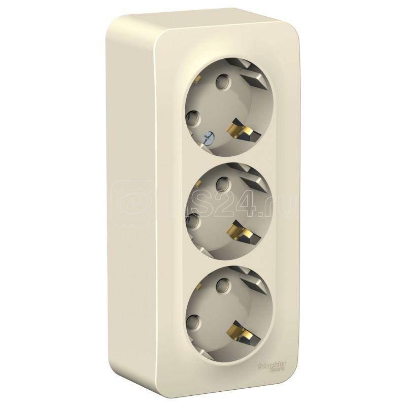 Розетка 3-м ОП Blanca 16А IP20 250В без заземл. без защ. шторок с изолир. пластиной молоч. SchE BLNRA000312