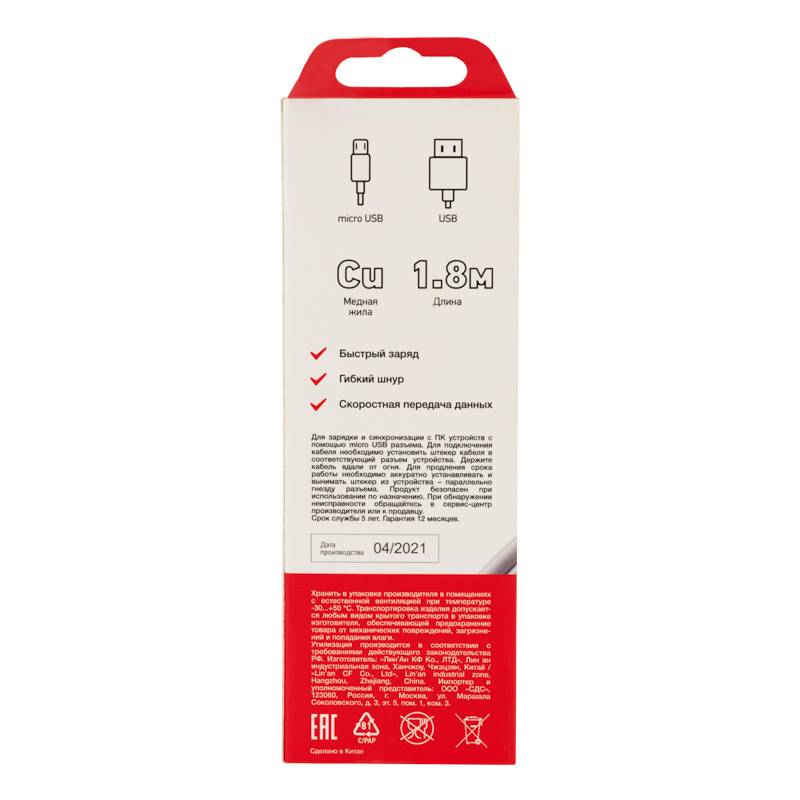 Кабель USB-micro USB/PVC/white/1,8m/REXANT