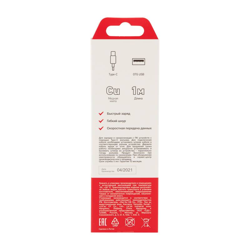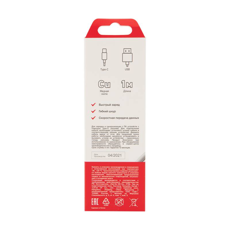 Кабель USB-Type-C/2A/PVC/white/1m/REXANT