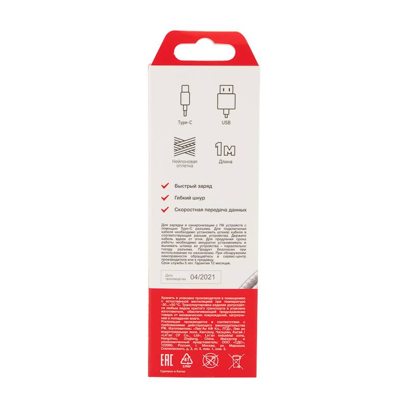 Кабель USB-Type-C/2A/nylon/silver/1m/REXANT