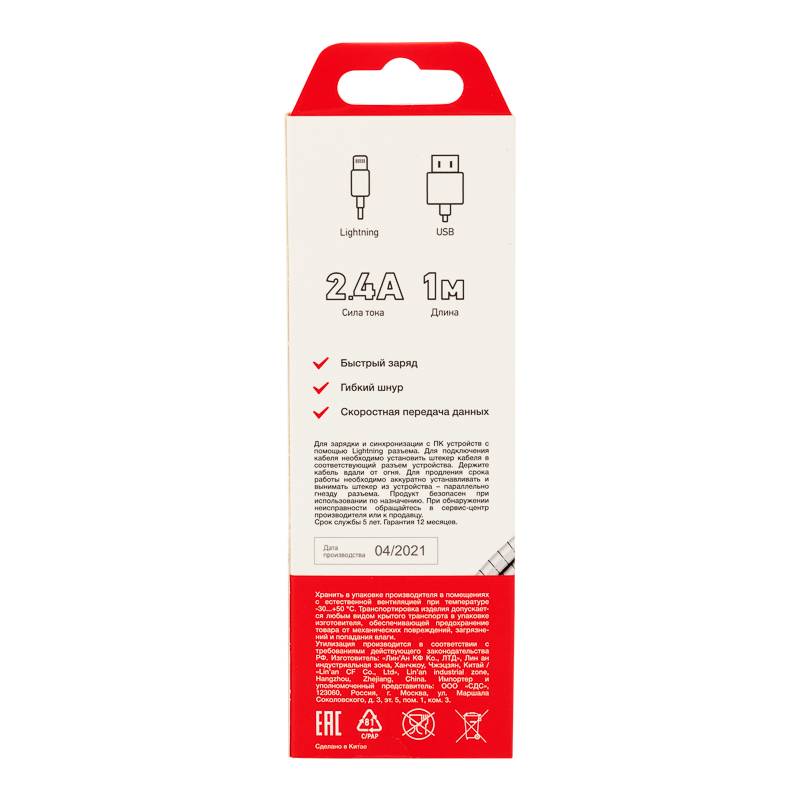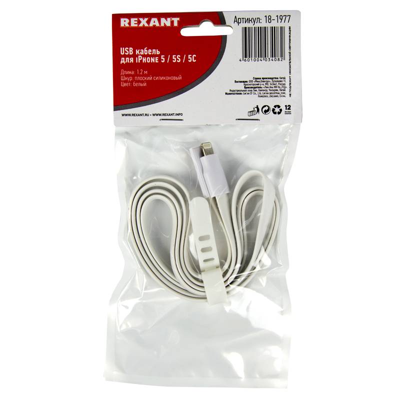 Кабель REXANT USB-Lightning 2.4 A, 1 м, белая нейлоновая оплетка