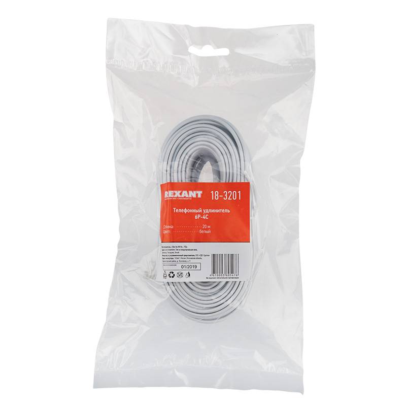Телефонный шнур, удлинитель RJ-11(6P-4C), длина 20 метров, белый REXANT