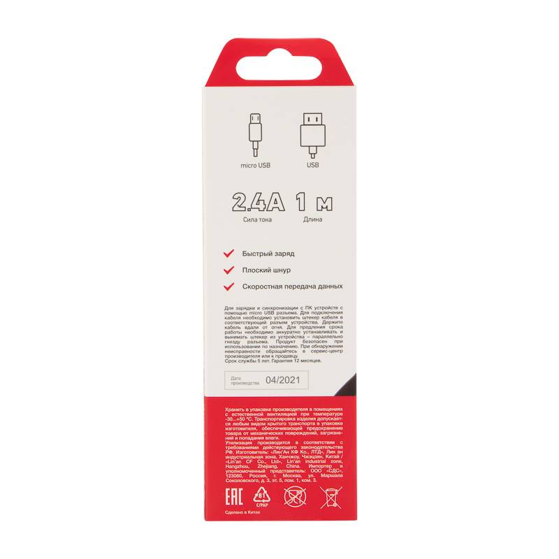 Кабель USB-micro USB/2,4A/PVC/black/1m/REXANT