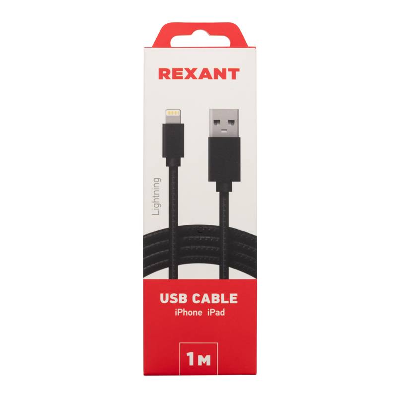 Кабель REXANT USB-Lightning 1 м, черная нейлоновая оплетка