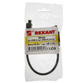 Кабель USB (шт. micro USB - шт. USB A) 0.2 метра, серый REXANT