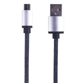 Кабель REXANT USB-microUSB 1 м, плоский провод, синяя джинсовая оплетка