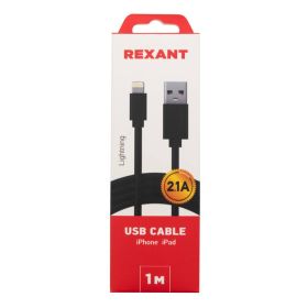 Кабель REXANT USB-Lightning 2.1 А, 1 м, черный ПВХ