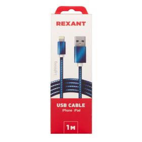 Кабель REXANT USB-Lightning 1 м, синяя нейлоновая оплетка