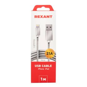 Кабель REXANT USB-Lightning 2 A, 1 м, матовая сталь