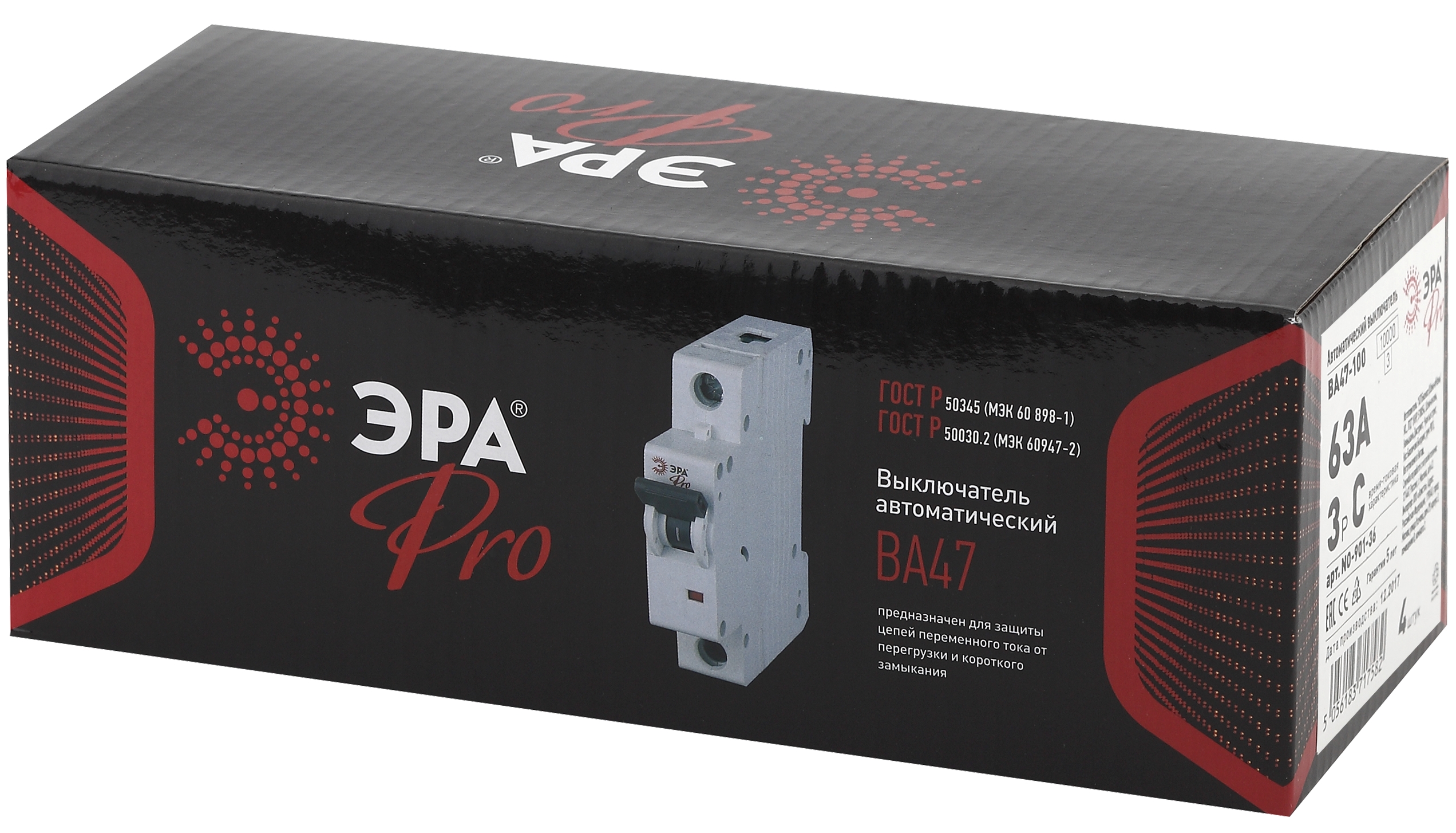 Автоматический выключатель ЭРА PRO NO-902-186 ВА47-63 1P 63А кривая C 6кА