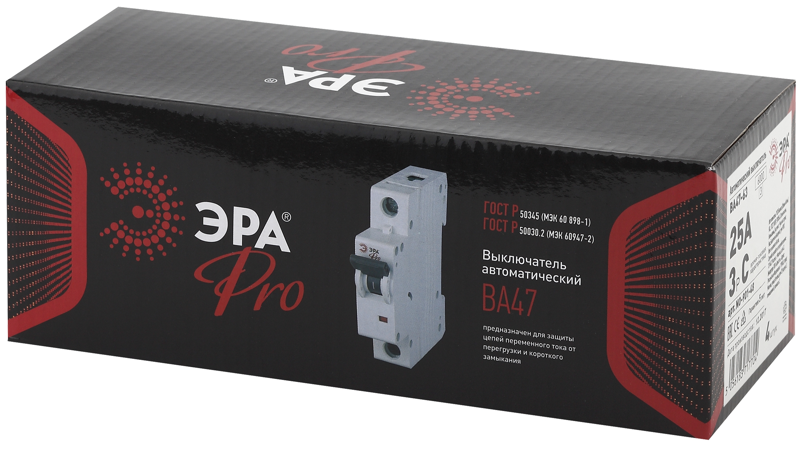 SIMPLE-mod-23 ЭРА SIMPLE Автоматический выключатель 3P 25А (C) 4,5кА ВА 47-29 (4/60/1680)
