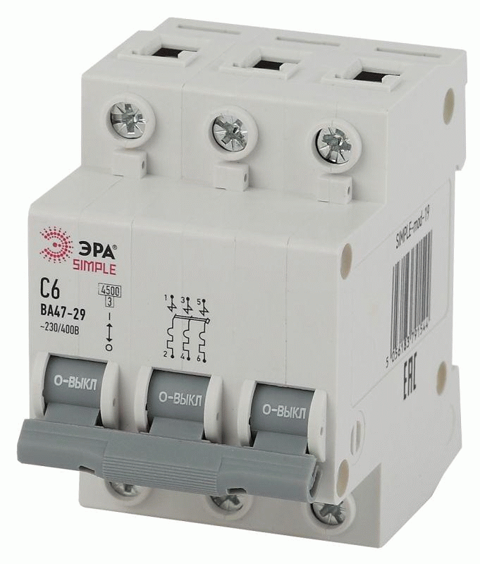 Автоматический выключатель ЭРА PRO NO-902-187 ВА47-63 3P 6А кривая C 6кА