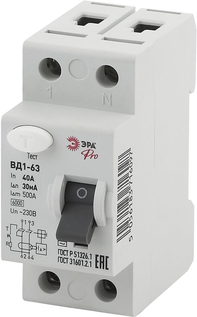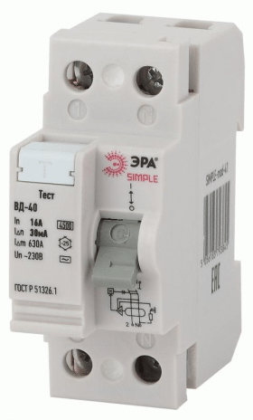 SIMPLE-mod-43 ЭРА SIMPLE Устройство защитного отключения УЗО ВД-40 2P 40А/30мА (электронное) (100/3