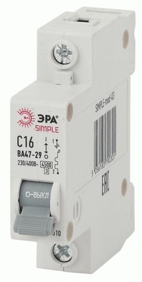 SIMPLE-mod-01 ЭРА SIMPLE Автоматический выключатель 1P 6А (C) 4,5кА ВА 47-29 (12/180/5040)
