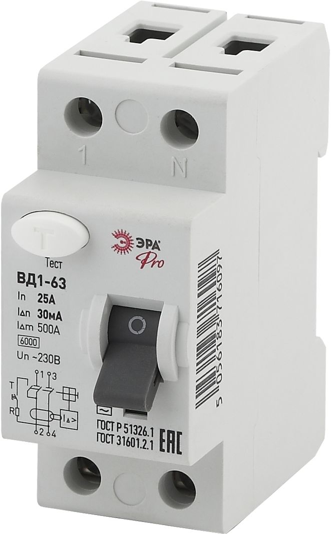 SIMPLE-mod-42 ЭРА SIMPLE Устройство защитного отключения УЗО ВД-40 2P 25А/30мА (электронное) (100/24