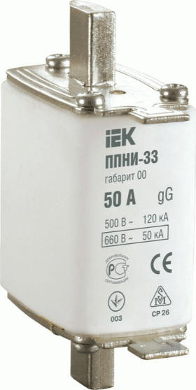 Вставка плавкая ППНИ-33 63А габарит 00 IEK DPP10-063