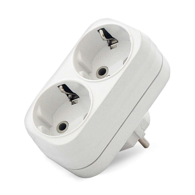 Разветвитель 2 гнезда с заземл. плоский 16А UNIVersal А302