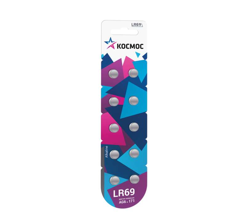 Элемент питания алкалиновый "таблетка" LR69/AG6 для часов (блист.10шт) КОСМОС KOCG6(LR69)10BL
