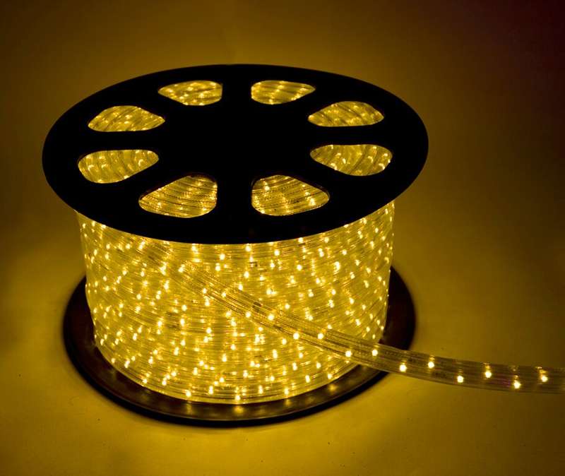 Шнур светодиодный Дюралайт 2W 1.8Вт/м IP65 220В d13мм постоянное свечение желт. (уп.100м) КОСМОС KOC-DL-2W13-Y