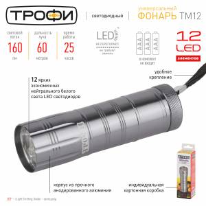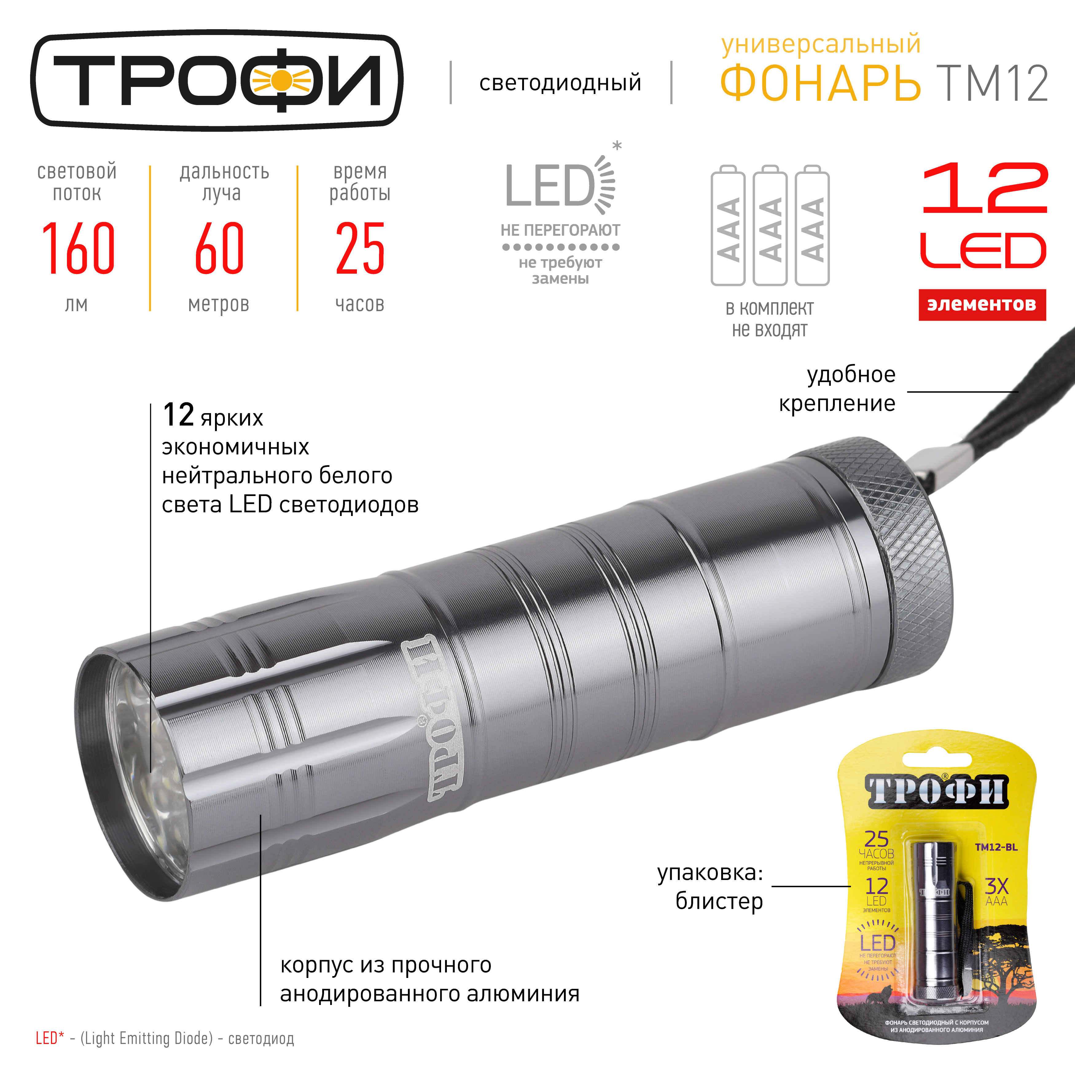 Светодиодный фонарь Трофи TM12 ручной на батарейках алюминиевый