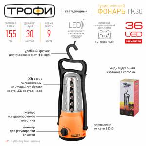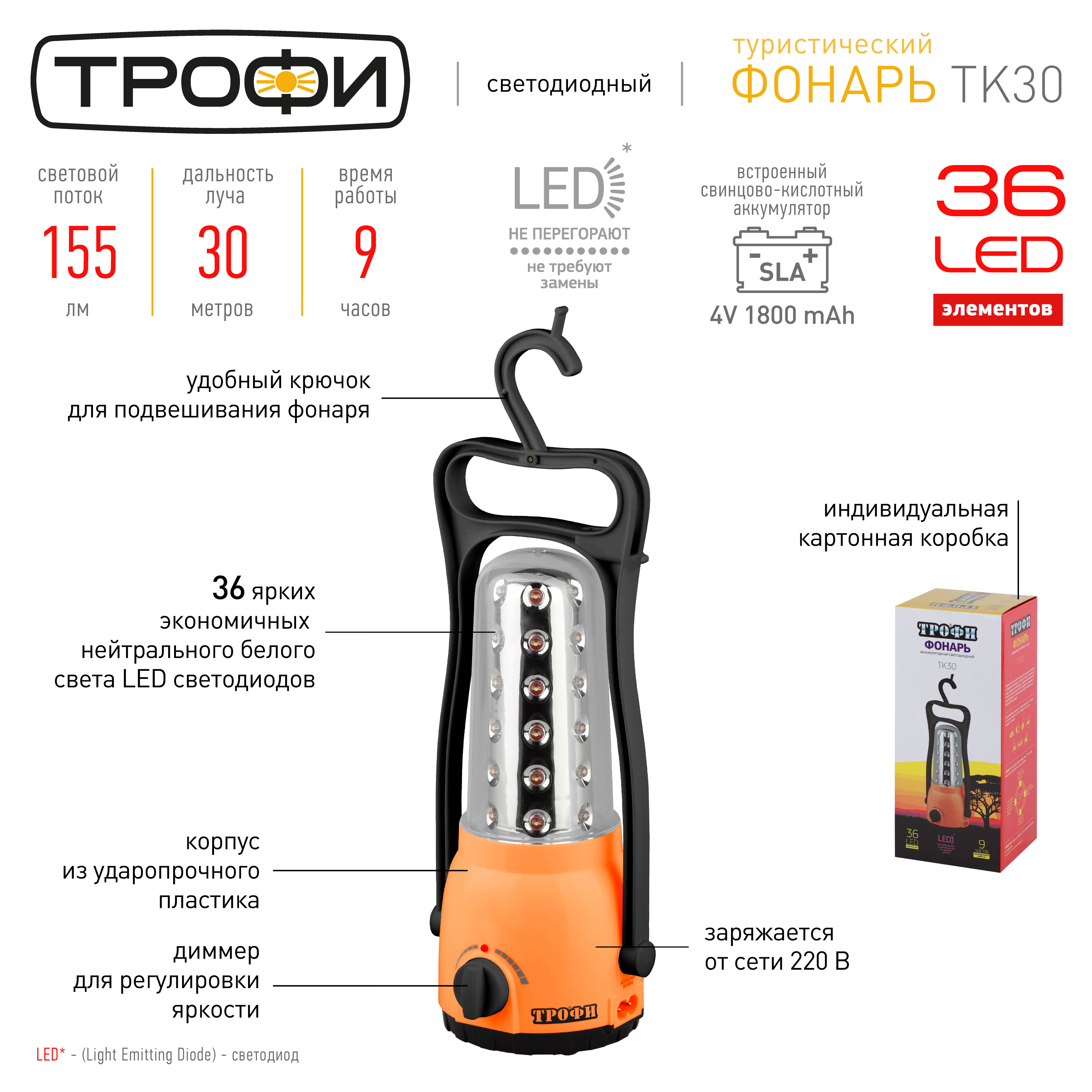 Фонарь кемпинговый светодиодный Трофи TK30 аккумуляторный с диммером и крючком походный светильник оранжевый