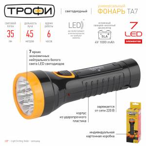 Светодиодный фонарь Трофи TA7 ручной аккумуляторный прямая зарядка