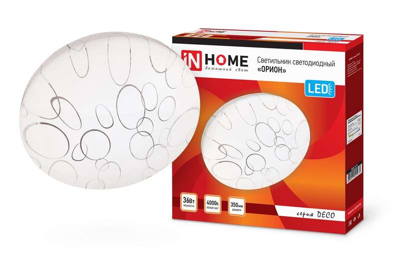 Светильник светодиодный DECO ОРИОН 36Вт 230В 6500К 2340лм 350мм IN HOME 4690612025087