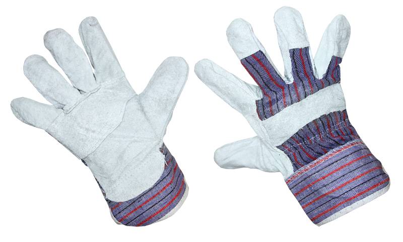 Перчатки спилковые (спилок + х/б ткань), кожевенный спилок класса АВ, материал подкладки 100 % х/б