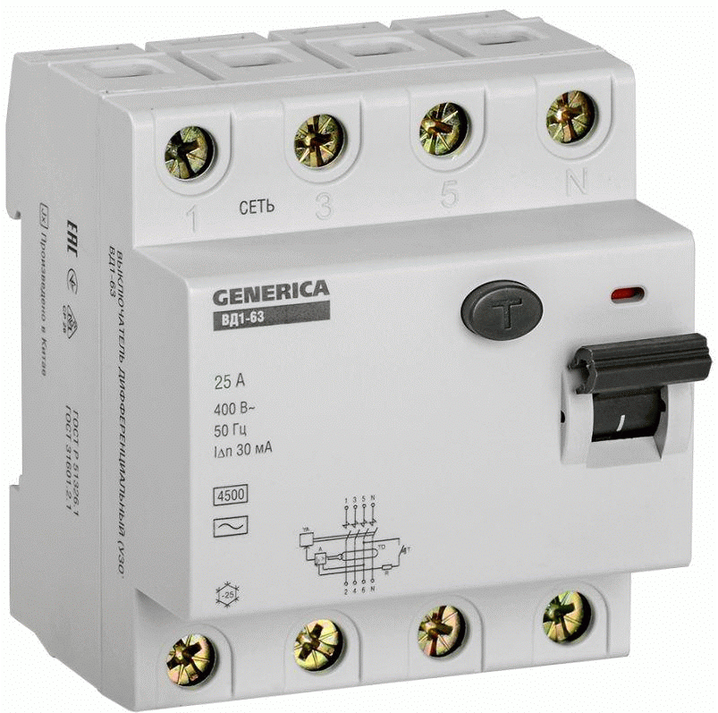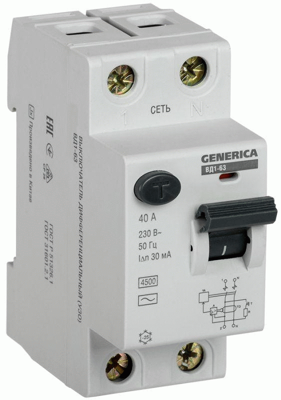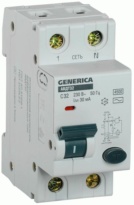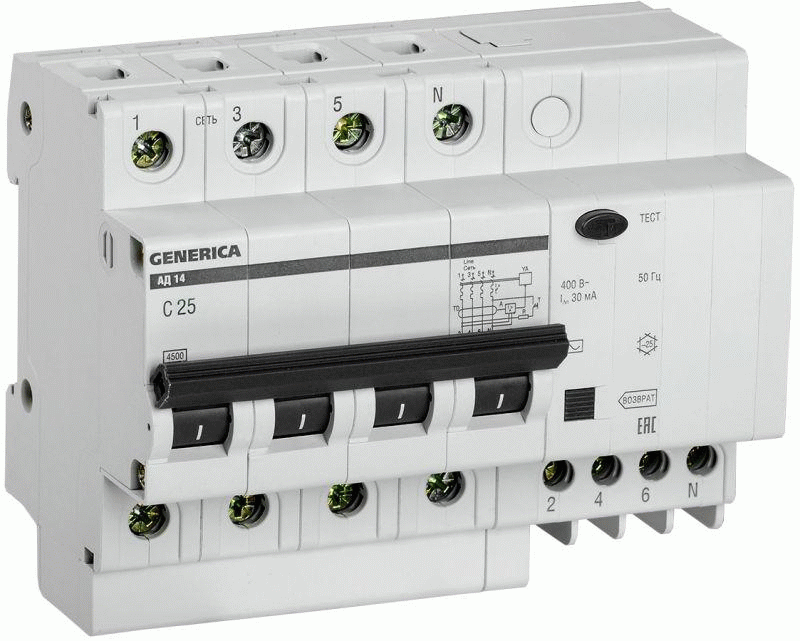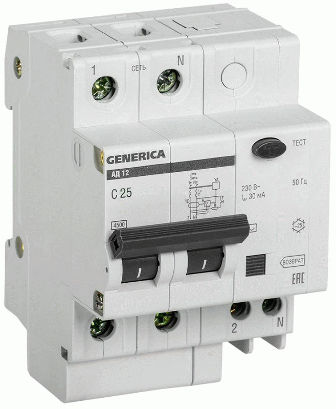 Выключатель автоматический дифференциального тока 2п 25А 300мА АД12 GENERICA IEK MAD15-2-025-C-300