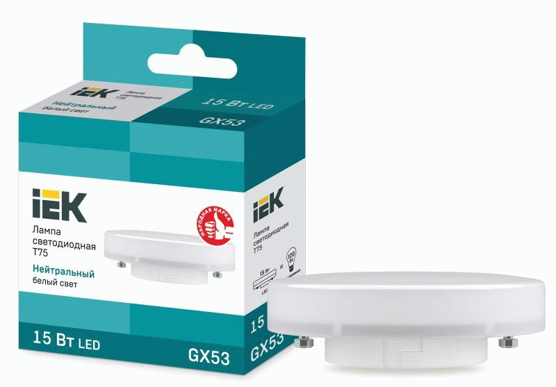 Лампа светодиодная Eco 15Вт T75 таблетка 4000К нейтр. бел. GX53 230В IEK LLE-T80-15-230-40-GX53