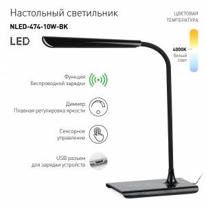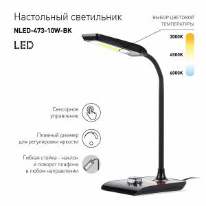 ЭРА наст.светильник NLED-474-10W-BK черный (8/96)