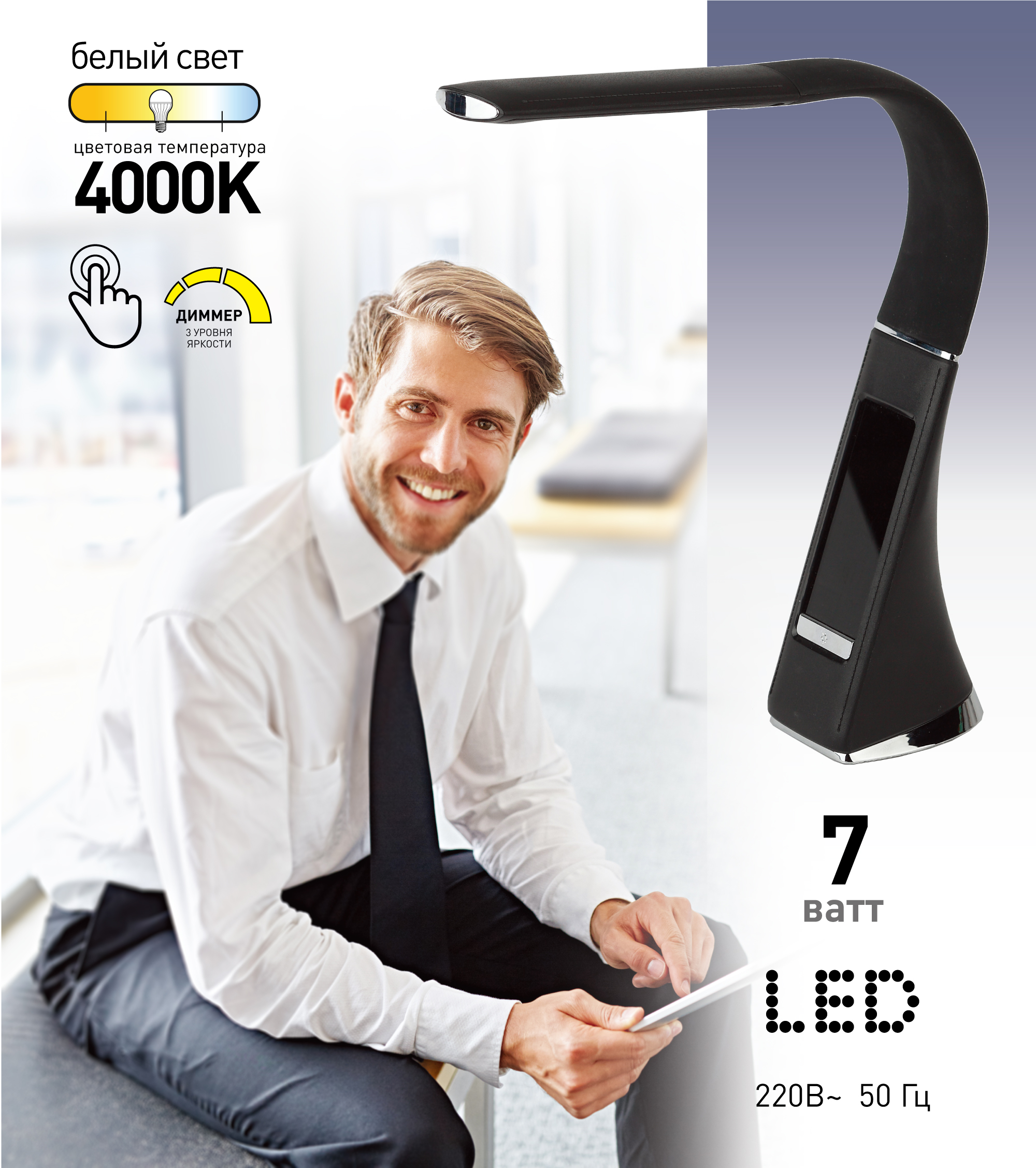 ЭРА наст.светильник NLED-464-7W-BK черный (12/144)
