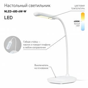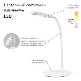 ЭРА наст.светильник NLED-480-6W-W белый (27/243)