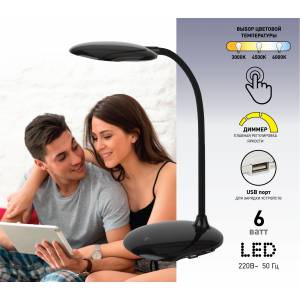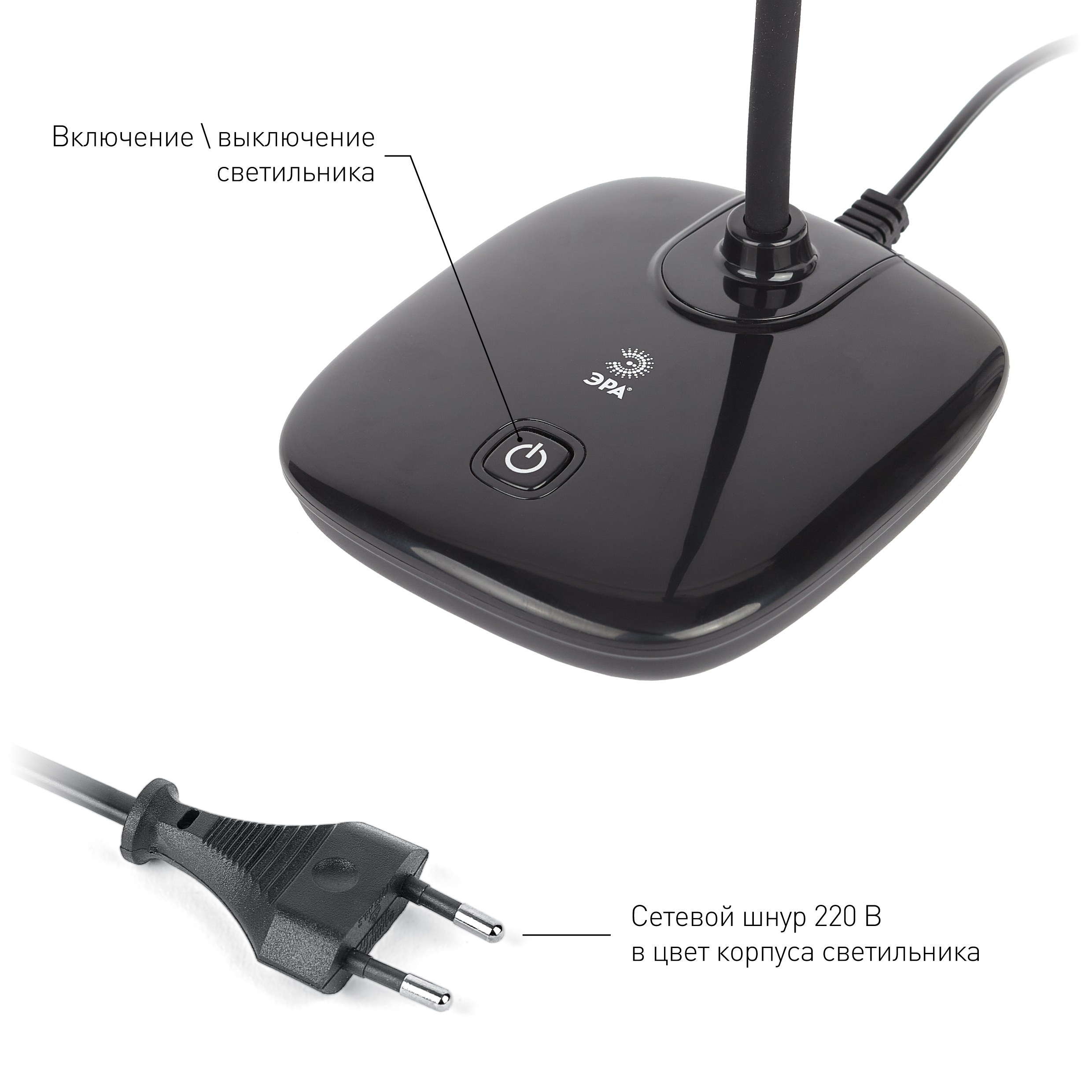 Настольный светильник ЭРА NLED-495-5W-BK светодиодный аккумуляторный складной черный