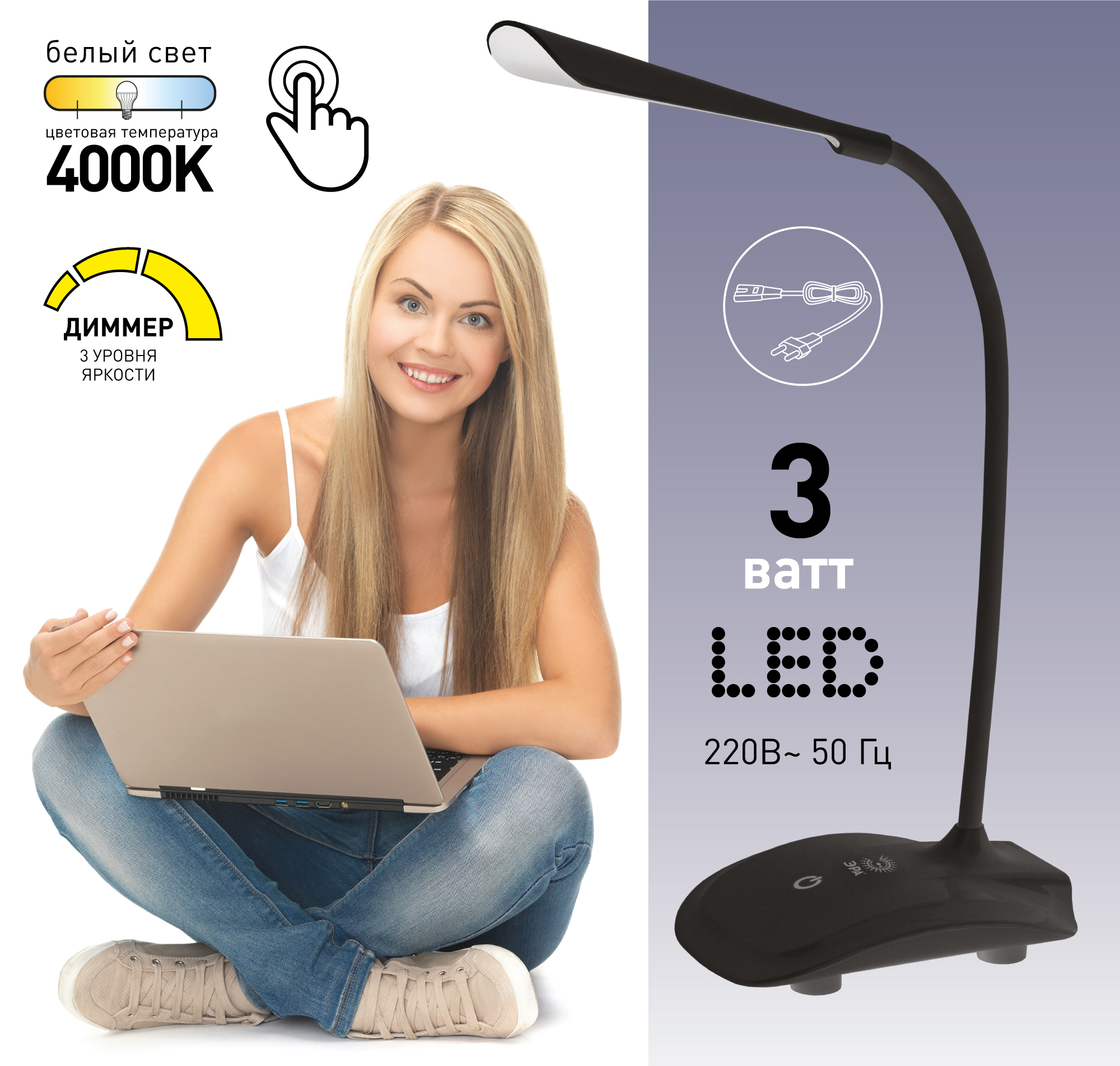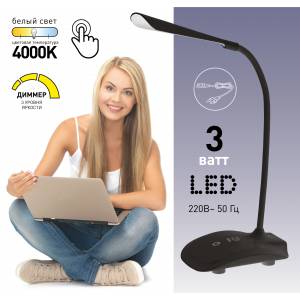 ЭРА наст.светильник NLED-428-3W-BK черный (12/48/192)