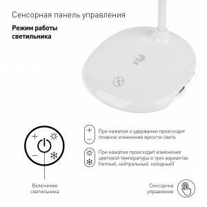 Настольный светильник ЭРА NLED-495-5W-W светодиодный аккумуляторный складной белый
