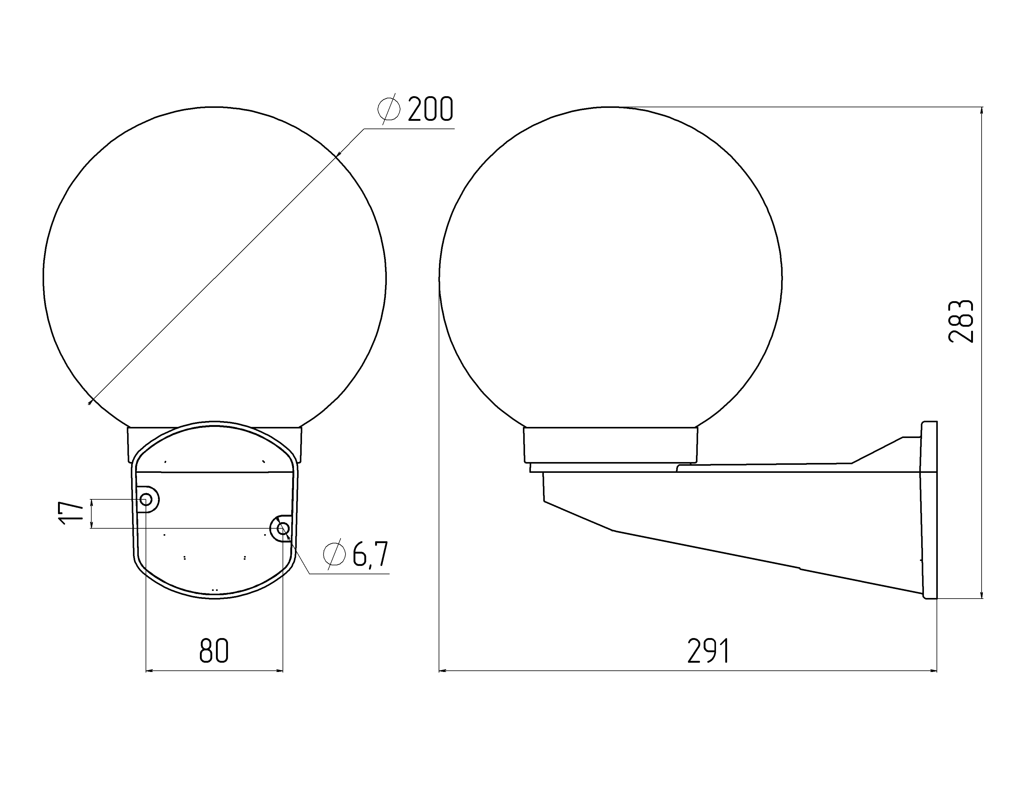 Садово-парковый светильник ЭРА НБУ 01-60-201 шар опаловый настенный IP44 Е27 max60Вт d200mm