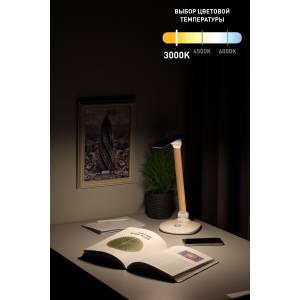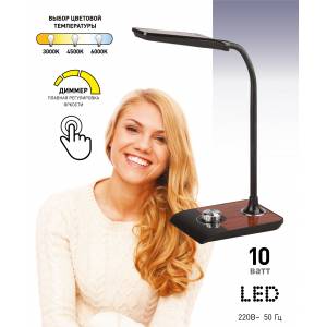 ЭРА наст.светильник NLED-473-10W-BK черный с деревом (6/72)