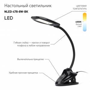 ЭРА наст.светильник NLED-478-8W-BK черный (20/160)