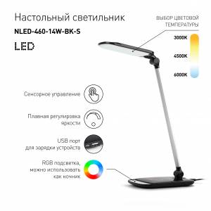 ЭРА наст.светильник NLED-460-14W-BK-S черный с серебром (8/168)