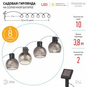 Садово-парковый светильник ЭРА НБУ 01-60-205 шар дымчатый настенный IP44 Е27 max60Вт d200mm