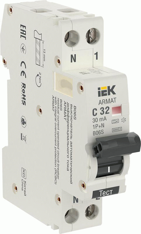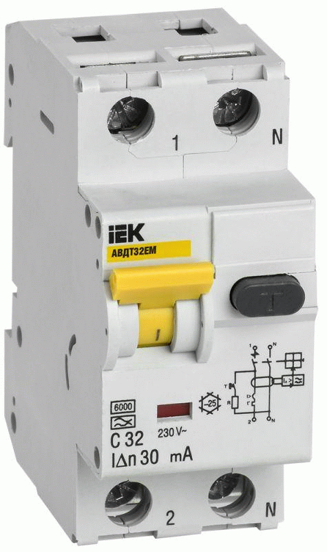 Выключатель автоматический дифференциального тока C 32А 30мА АВДТ32EM IEK MVD14-1-032-C-030