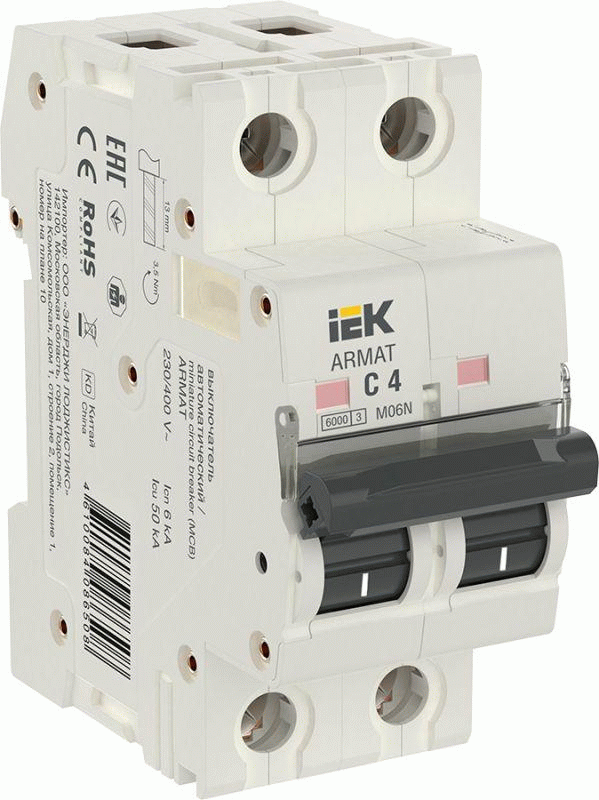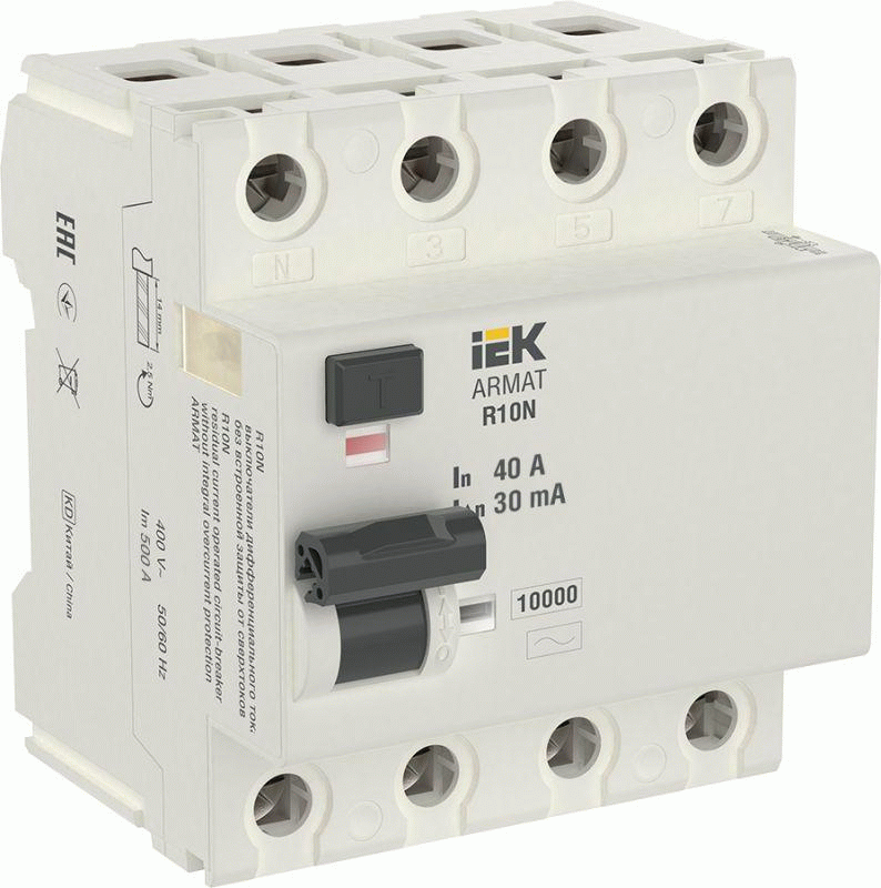 Выключатель автоматический дифференциального тока 4п C 63А 100мА тип AC 4.5кА АД-14 IEK MAD10-4-063-C-100