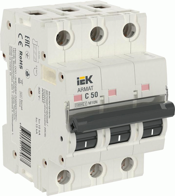 Выключатель автоматический модульный 3п C 100А 15кА ВА47-150 IEK MVA50-3-100-C