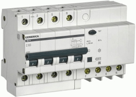 Выключатель автоматический дифференциального тока 4п 63А 300мА АД14 GENERICA IEK MAD15-4-063-C-300