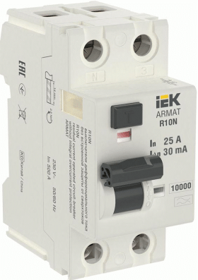 Выключатель автоматический дифференциального тока 2п C 25А 10мА тип AC 4.5кА АД-12 IEK MAD10-2-025-C-010