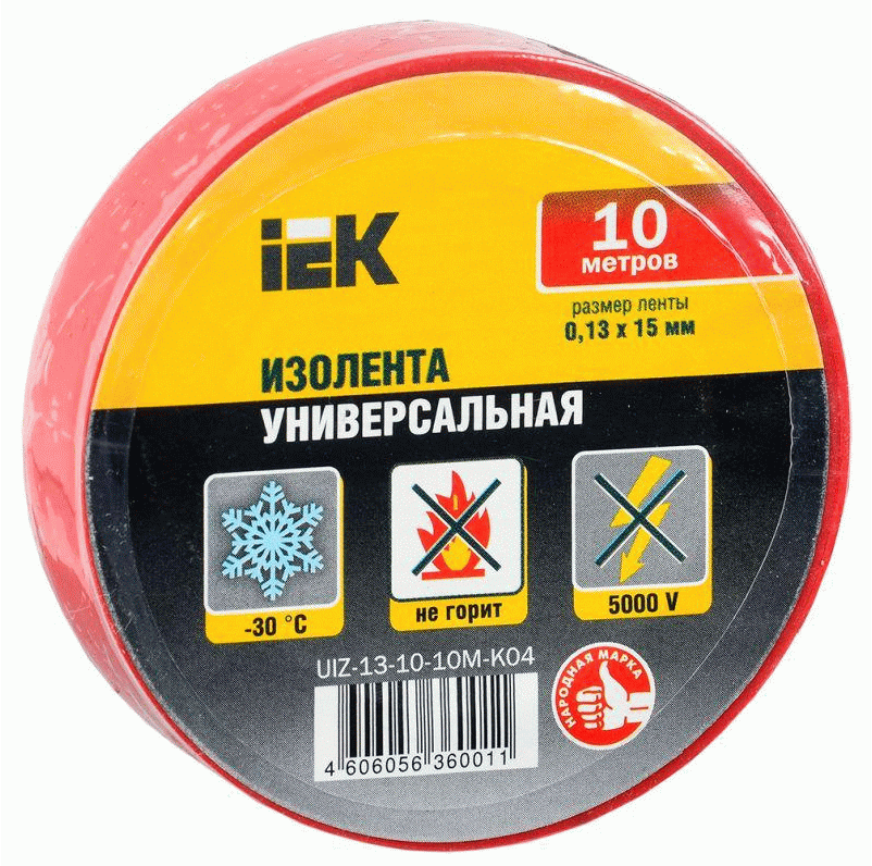 Изолента ПВХ 0.13х15мм (рул.10м) красн. IEK UIZ-13-10-10M-K04